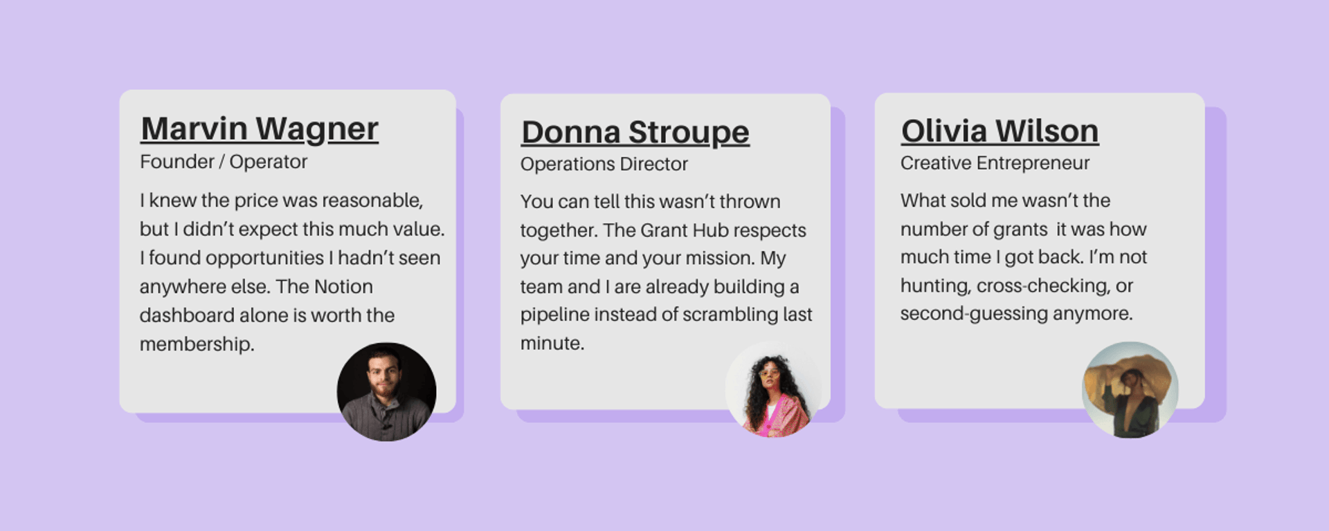 A: As soon as you check out, you'll receive a link to a live Google Sheet with all the active grants. Bookmark it — this is your permanent access link, and it updates weekly.