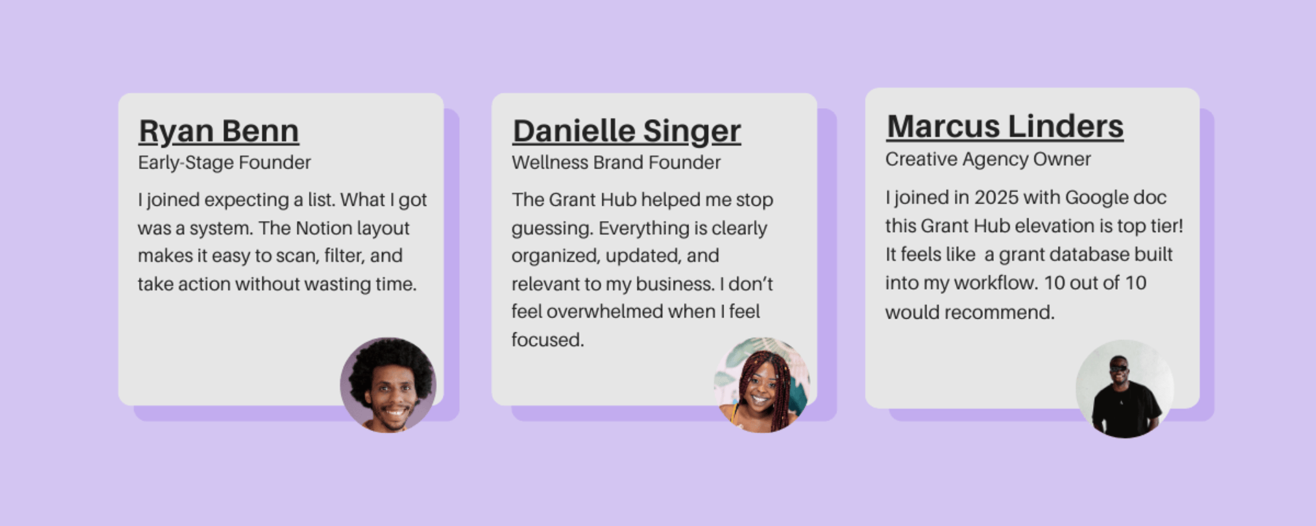 Join founders who use the Designed To Conquer Grant Hub as their funding platform.